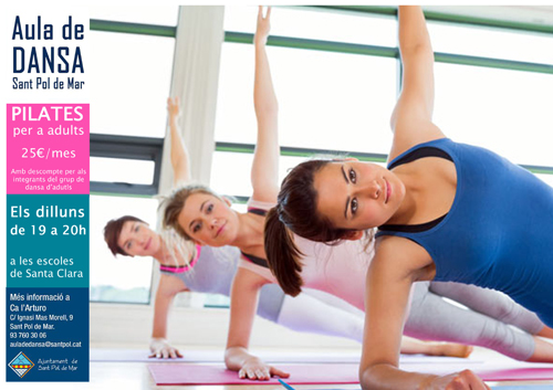 A petició d'algunes alumnes de l'Aula de Dansa, aquest curs s'incorpora un nou grup per a adults, PILATES. Serà els dilluns de 19 a 20h a les Escoles de Sant Clara.