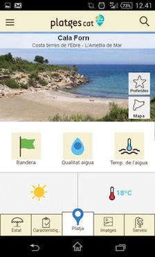 - Aquesta iniciativa, amb el nom de PlatgesCat, aporta informació en temps real i disponible en set idiomes sobre la previsió de la qualitat sanitària de l'aigua de bany, la bandera de salvament i socorrisme, el temps, així com també avisos sobre possible presència de meduses