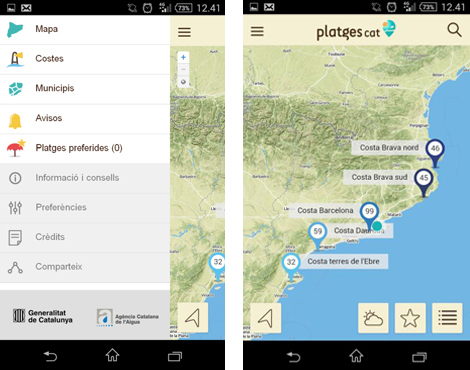 L'Agència Catalana de l'Aigua ha activat aquesta setmana una nova aplicació per mòbils i també consultable a través del web de l'Agència, anomenada PlatgesCat, amb informació sobre prop de 300 platges catalanes. Aquest aplicatiu aporta dades en temps real sobre la previsió de la qualitat de l'aigua, la bandera de salvament i socorrisme, el temps i la possible presència de meduses i la seva perillositat. Aquesta aplicació (la pàgina inicial es pot veure a l'esquerra) va dirigida a la ciutadania en general, al turisme i està disponible en 7 idiomes.