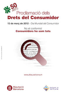 El 15 de març és el Dia Mundial del Consumidor i es celebra per commemorar que en aquesta mateixa data de l'any 1962 el president dels EE.UU. J. F. Kennedy va parlar en el Congrés dels Estats Units, per primera vegada del col·lectiu que formen les persones consumidores, i va pronunciar la frase: 'Consumidors ho som tots!' per destacar la condició de tota persona ciutadana com a persona consumidora i el fet de què aquesta condició també porta lligats uns drets: a la seguretat, a la informació, a la lliure elecció, a l' existència de competència de preus i a ser escoltats pels governs en la formulació de les seves polítiques de consum.