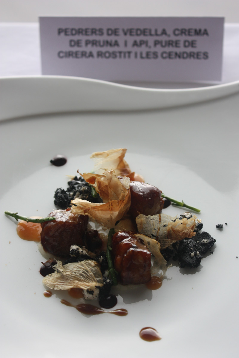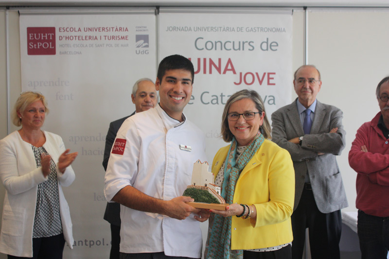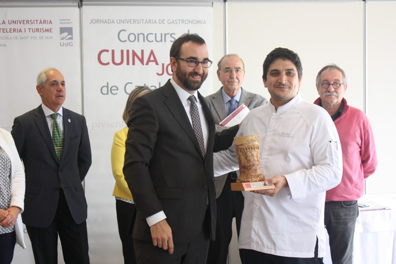 4 d'abril de 2015.- El xef José Manuel Zafra, del Restaurant Bistreau (Hotel Mandarin Oriental de Barcelona), s'ha proclamat guanyador de la 30a edició del Concurs de Cuina Jove de Catalunya, que ha celebrat aquest dilluns l'Hotel-Escola de Sant Pol de Mar. El jove cuiner ha estat premiat pel seu plat "Lletons de vedella, crema de pruna i api, puré de cirera rostit i les cendres", un guardó que li ha entregat el President del Consell de Direcció de l'Hotel-Escola de Sant Pol, Ramon Serra.