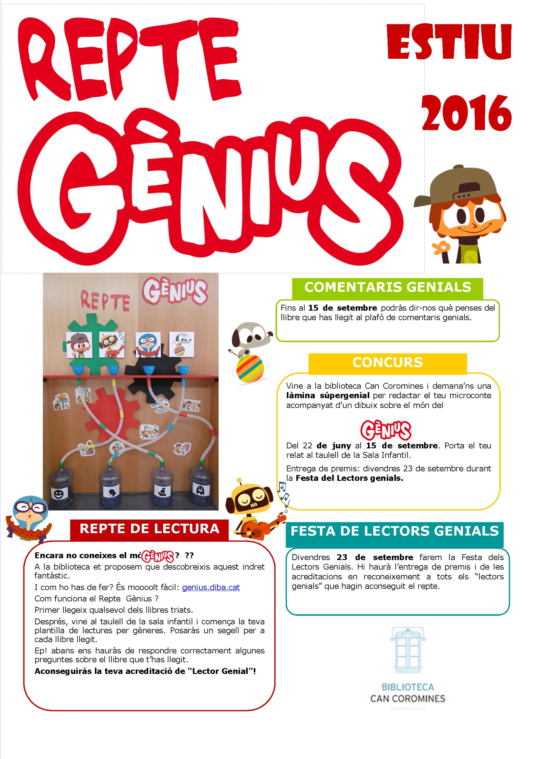 Vine a la biblioteca, apunta't al concurs, tria la teva lectura i… comença el teu Repte Gènius.