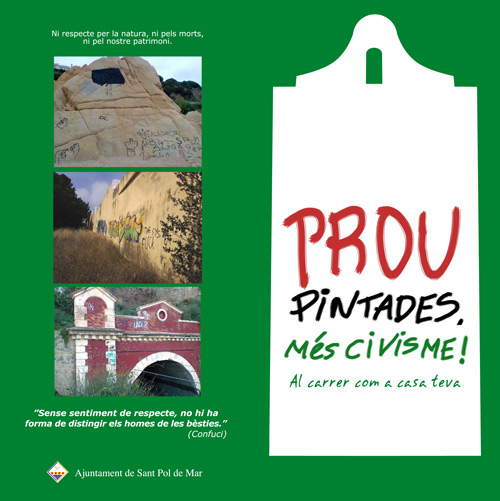 L'Ajuntament de Sant Pol de Mar inicia una campanya per fer front al problema de les pintades al mobiliari urbà i a l'entorn natural de la nostra vila; pintades que han anat proliferant en els últims temps, causant un greu perjudici tant a la imatge del nostre poble, com a la resta de poblacions del nostre entorn.