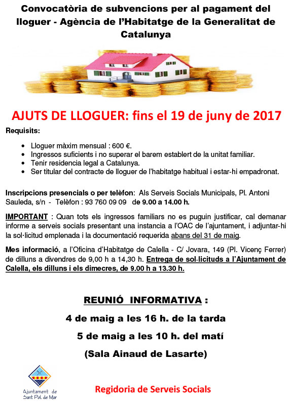 AJUTS DE LLOGUER: fins el 19 de juny de 2017