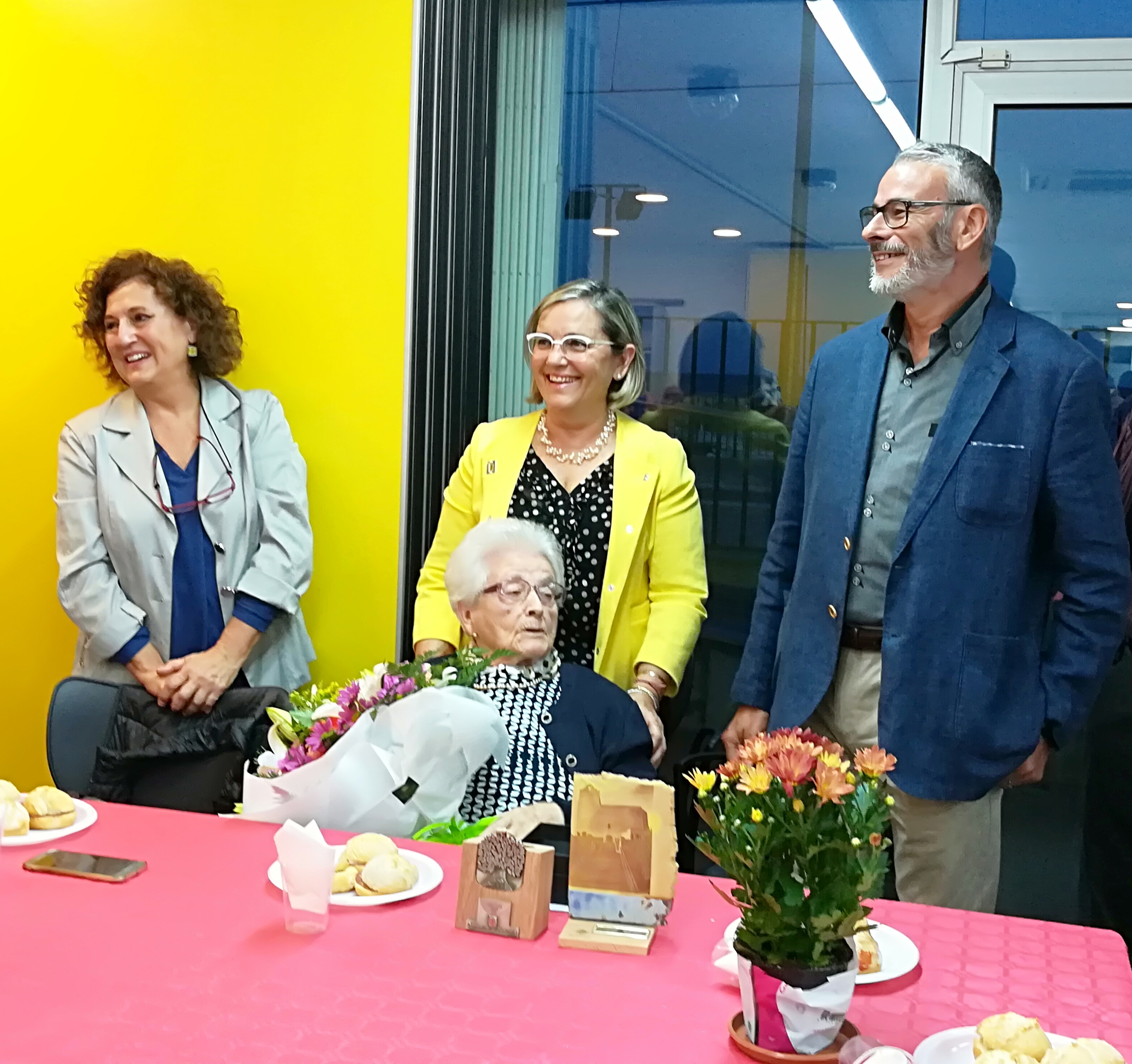 A l'acte també hi ha assistit l'alcaldessa Montserrat Garrido i el Regidor de Serveis Socials, Josep Parada, qui li han entregat una placa commemorativa de la vila i un ram de flors.