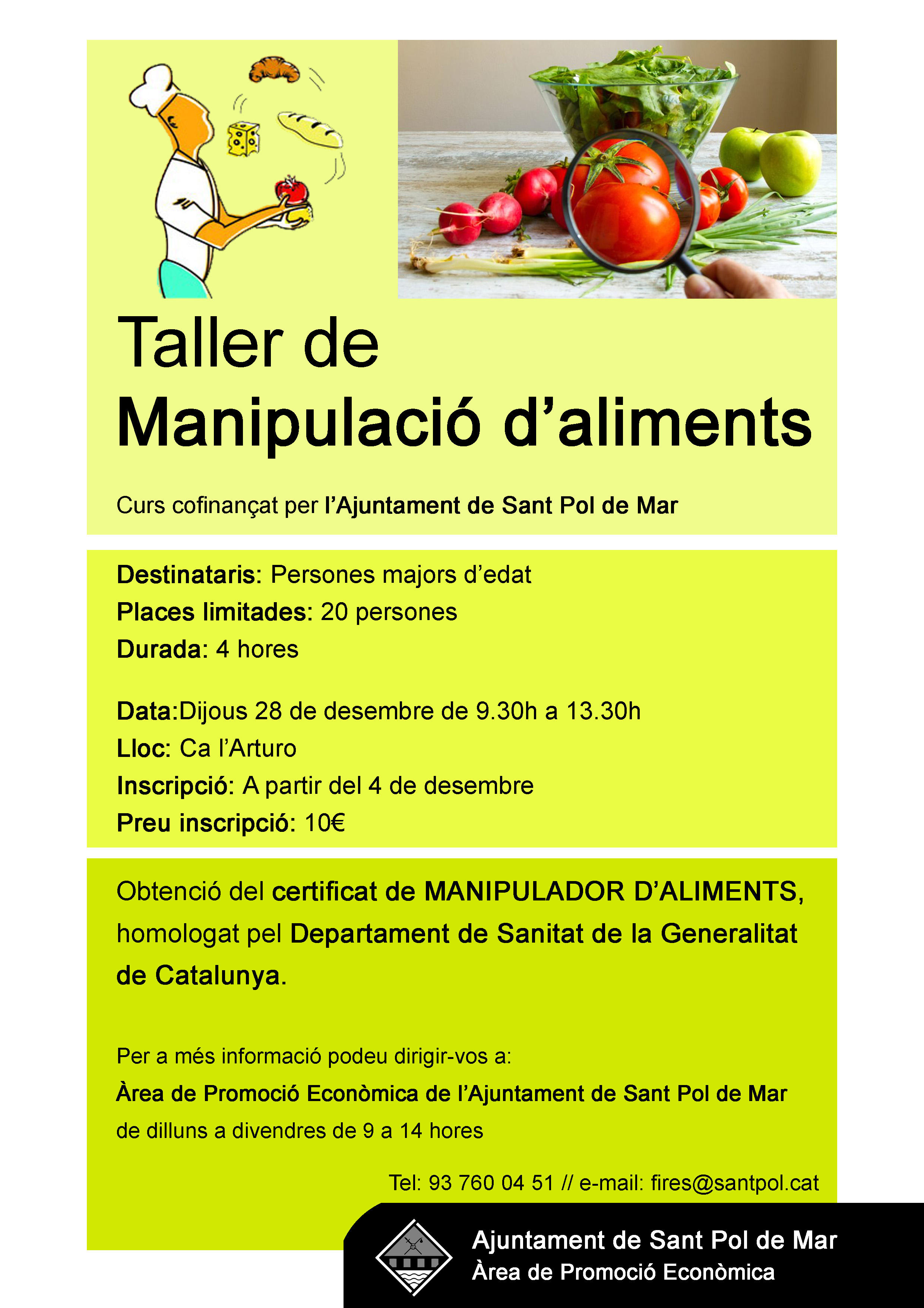 Ara tens l'oportunitat de realitzar el taller de manipulació d'aliments reconegut pel Departament de Sanitat de la Generalitat de Catalunya.