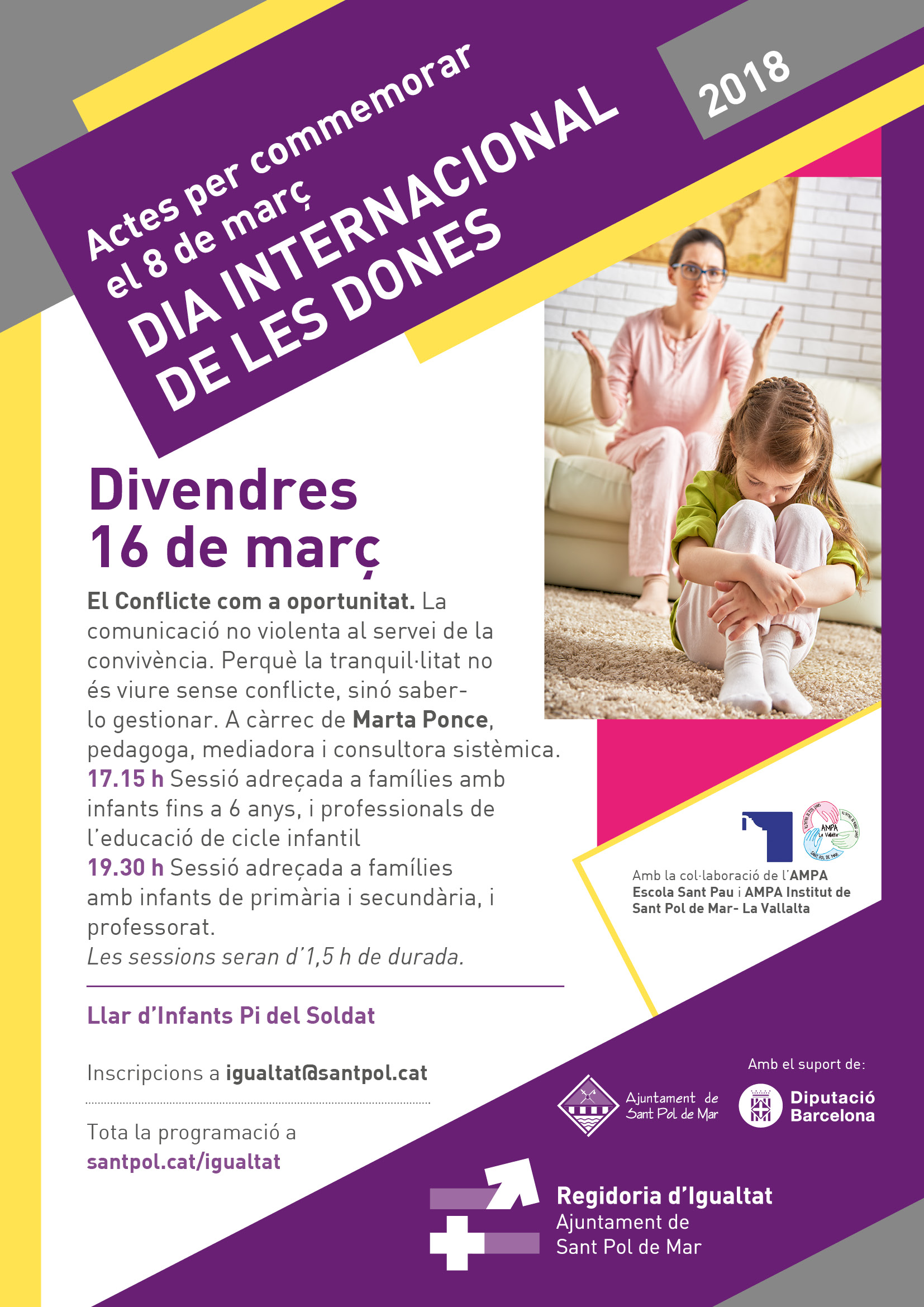 El Conflicte com a oportunitat. La comunicació no violenta al servei de la convivència. Perquè la tranquil·litat no és viure sense conflicte, sinó saber-lo gestionar. A càrrec de Marta Ponce, pedagoga, mediadora i consultora sistèmica.