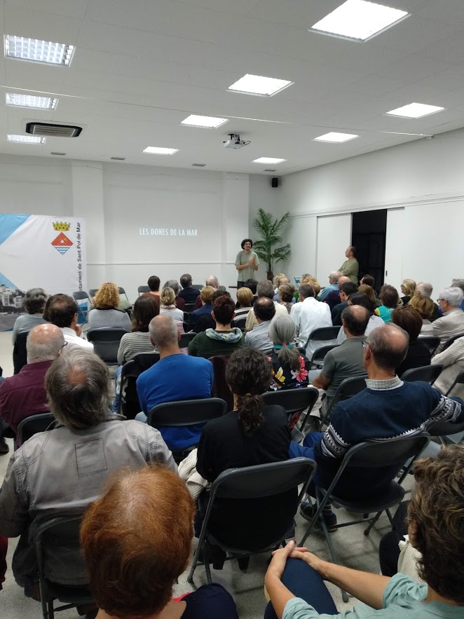 L'acte va començar amb la presentació, a càrrec de Cristina Bosch, Arxivera Municipal, que va destacar la importància del patrimoni audiovisual i va explicar la manera com les pel·lícules havien passat a formar part del Fons de l'Arxiu. Tot seguit va ser el torn d'Eliseu Carbonell, Doctor en Antropologia, que va parlar del context històric del moment, fent especial èmfasi en la construcció de l'espigó, i deixant-nos interessants reflexions al voltant de com l'estiueig i el turisme han transformat Sant Pol i han acabat desplaçant l'activitat pesquera local.