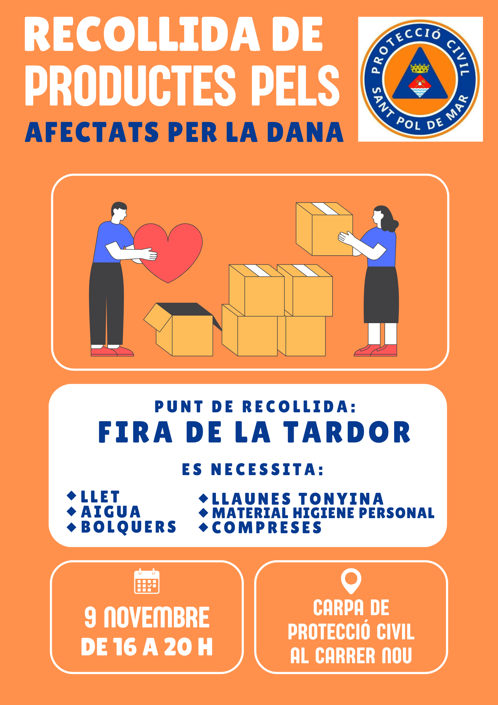 L'associació de Protecció Civil de Sant Pol de Mar organitza una recollida de productes de primera necessitat per a les persones afectades per la DANA al País Valencià.