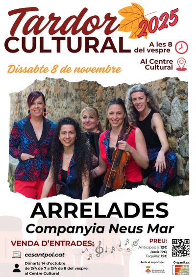 “Arrelades” és un viatge a través de la cultura catalana, un homenatge a la seva essència més pura mitjançant la veu i els sons d’instruments com l’acordió, el violí i la percussió. Com l’arbre que presideix l’escenari i que s’arrela profundament en la terra, aquest espectacle explora la tradició catalana, connectant amb les cançons que han donat vida i identitat al seu poble, des de la cançó tradicional fins a l’actualitat. A mesura que les branques de l’arbre creixen, l’espectacle s’expandeix.