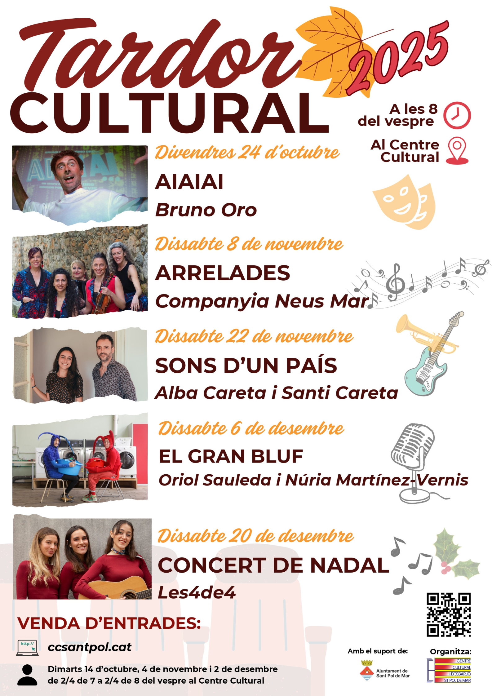 Les entrades es poden comprar telemàticament al web ccsantpol.cat i també es vendran físicament al Centre Cultural els dimarts 14 d'octubre, 4 de novembre i 2 de desembre, de 2/4 de 7 a 2/4 de 8 del vespre.