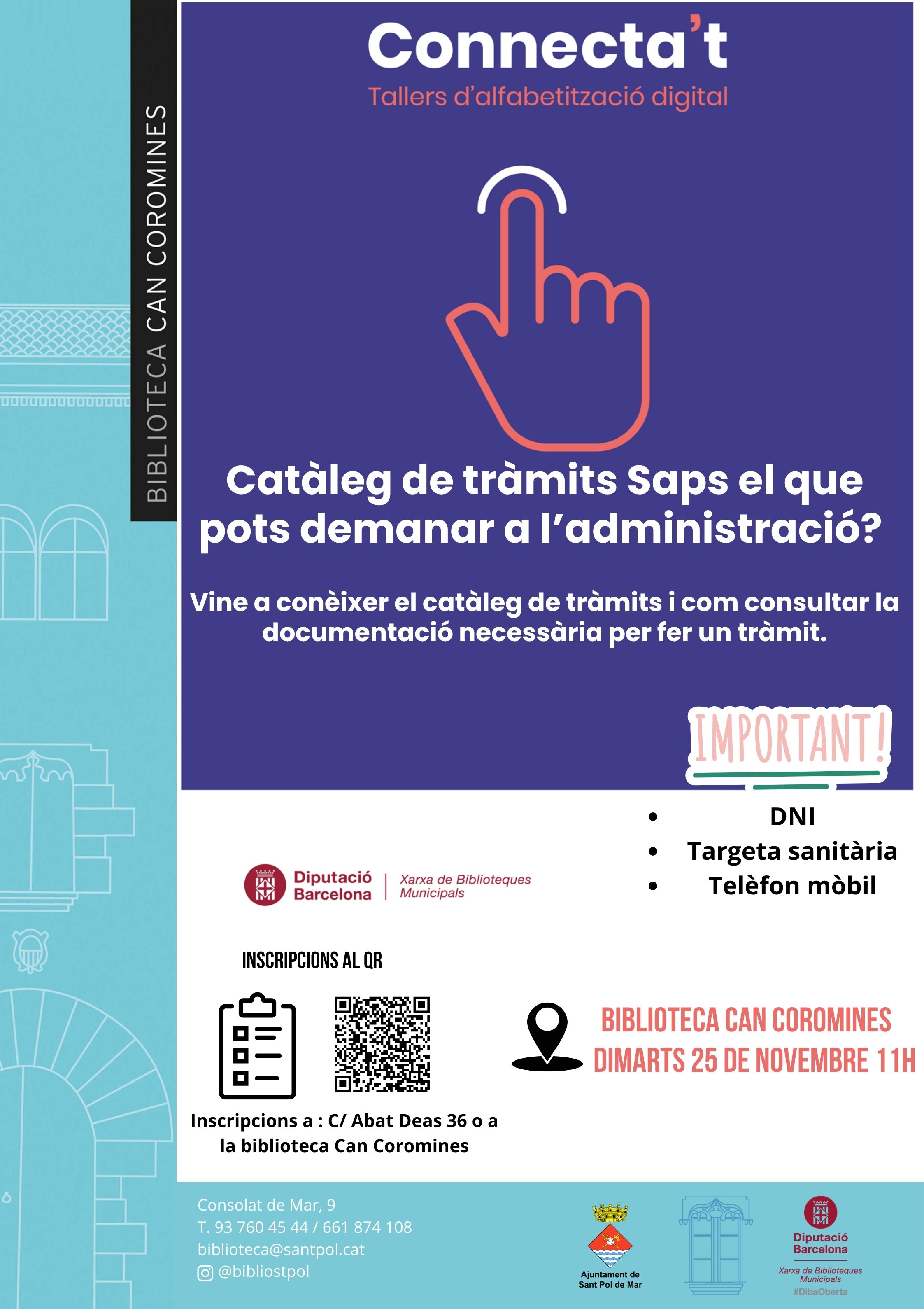 La Biblioteca Can Coromines de Sant Pol de Mar acollirà al novembre tres tallers gratuïts d’alfabetització digital dins del programa Connecta’t, impulsat per la Diputació de Barcelona i la Xarxa de Biblioteques Municipals.