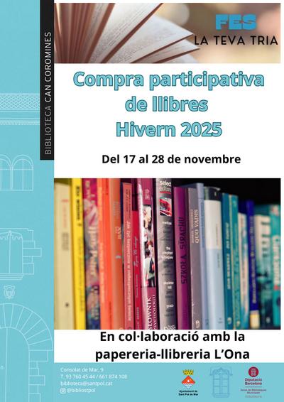Del 17 al 28 de novembre, ves a la llibreria l'Ona i tria quins llibres voldries que la Biblioteca de Sant Pol incorpori al seu catàleg.