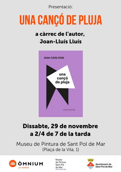 Us convidem a la presentació d'Una cançó de pluja, a càrrec del seu autor Joan-Lluís Lluís.