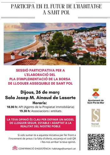 Per tal que l’estudi respongui de manera realista a les necessitats del municipi, l’Ajuntament fa una crida a la col·laboració de la ciutadania, els agents privats i el conjunt del teixit local i convida a respondre aquesta breu enquesta. Les aportacions dels diferents actors seran clau per analitzar la situació actual i definir propostes ajustades als recursos disponibles i a la realitat del mercat de lloguer a Sant Pol.