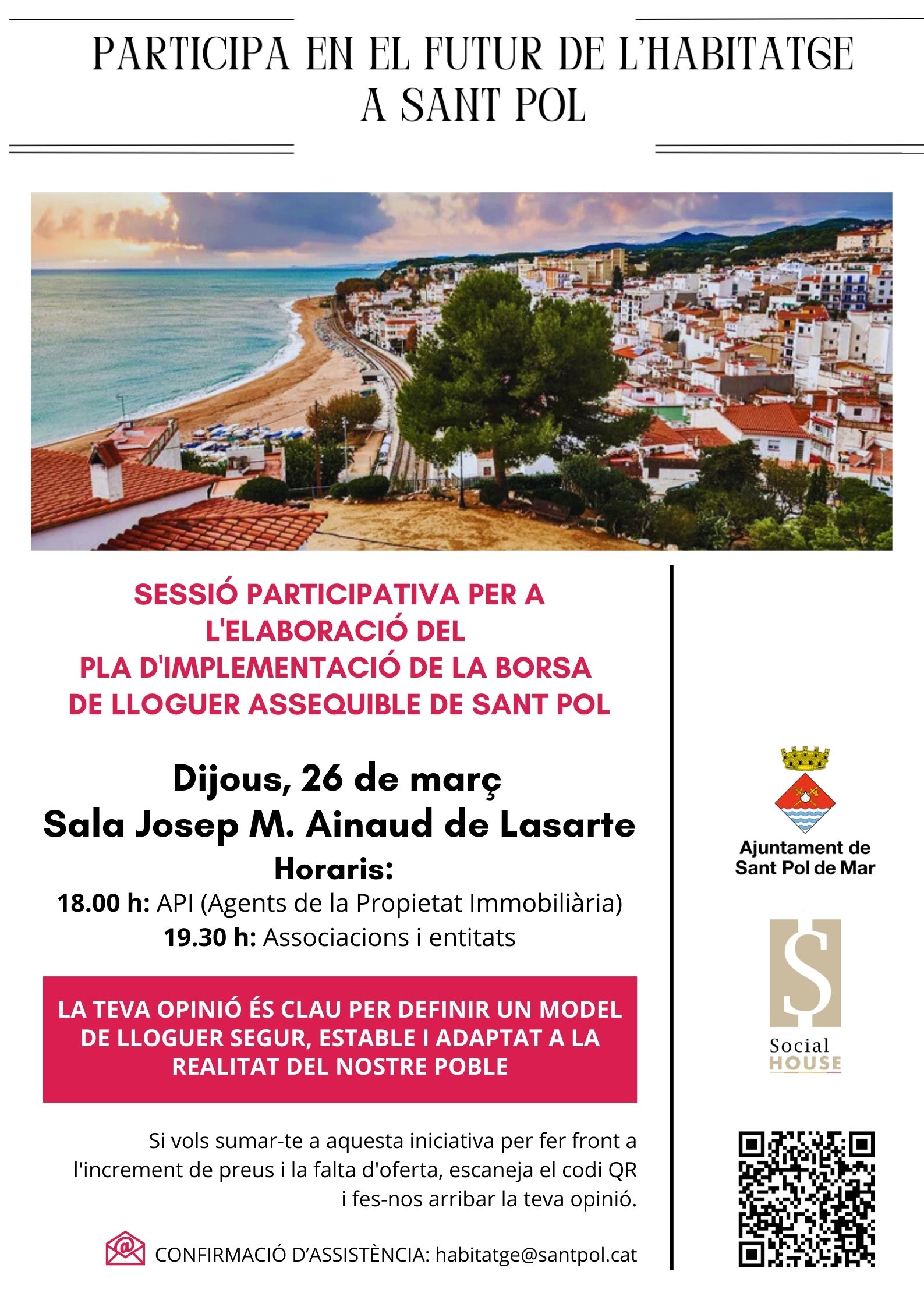En els darrers anys, Sant Pol ha experimentat un increment notable dels preus del lloguer i una reducció progressiva de l’oferta disponible. Aquesta situació afecta especialment col·lectius com el jovent, les famílies amb rendes baixes, les persones grans i altres sectors vulnerables, que veuen limitat l’accés a un habitatge digne dins del municipi.